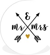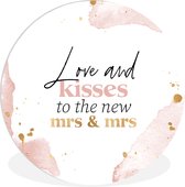 Wandcirkel - Muurcirkel Binnen - 'Love and kisses to the new Mr & Mrs' - Bruiloft - Spreuken - Quotes - ⌀ 60 cm - Wanddecoratie - Ronde Schilderijen