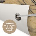 Tuinposters, ook wel tuindoek genoemd, zijn posters die specifiek geschikt zijn om buiten op te hangen. Dit tuindoek kan daarom tegen een stootje. Voor deze buitenposter is bisonyl zeil gebruikt. Dit zeil is een gecoat zeildoek met een fraaie afwerking. De tuinposter is UV-bestendig, waardoor deze niet verkleurt in de zon. In het doek zijn meerdere ringen geplaatst waardoor je het gemakkelijk op kan hangen! Tot een formaat van 120x80 cm zijn de ringen in de hoeken, bij grotere formaten komen de ringen om de 60 cm. Het doek kan uitstekend tegen de verschillende weersinvloeden en blijft gegarandeerd 3 jaar goed.