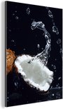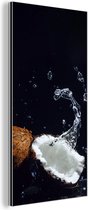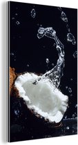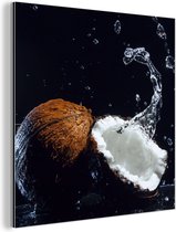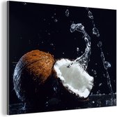 Wanddecoratie Metaal - Aluminium Schilderij Industrieel - Kokosnoot - Stilleven - Water - Zwart - Fruit - 60x80 cm - Dibond - Foto op aluminium - Industriële muurdecoratie - Voor de woonkamer/slaapkamer