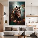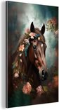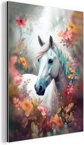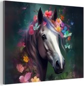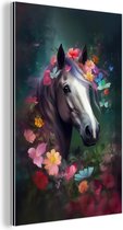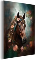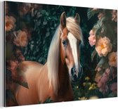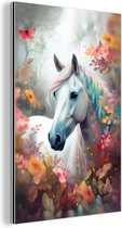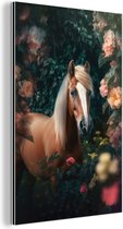 Aluminium schilderij 120x180 cm - Wanddecoratie metaal - Paard - Natuur - Bloemen - Dieren - Bos - Metalen muurdecoratie woonkamer - Decoratie industrieel - Foto op dibond - Industriële accessoires slaapkamer