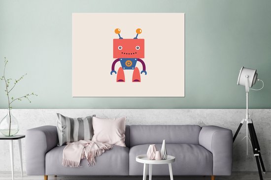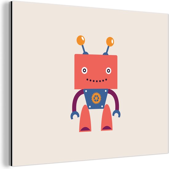 Wanddecoratie Metaal - Aluminium Schilderij Industrieel - Robot - Tandwiel - Gezicht - Antenne - Kids - Jongetjes - 160x120 cm - Dibond - Foto op aluminium - Industriële muurdecoratie - Voor de woonkamer/slaapkamer