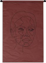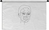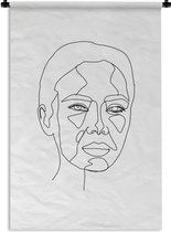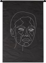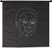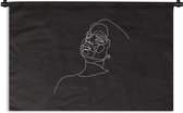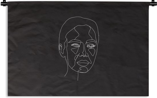 Wandkleed Line-art Vrouwengezicht - 16 - Line-art voorkant vrouwengezicht op een zwarte achtergrond Wandkleed katoen 180x120 cm - Wandtapijt met foto XXL / Groot formaat!