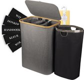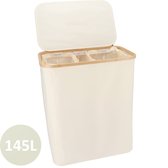Wasmand met Wassorteerder en Deksel | Wasbox met 3 vakken | Bamboe | 120L