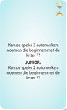 Wat dit spel extra bijzonder maakt, is dat elke opdracht ook een junior variant heeft. Daardoor kunnen kinderen net zo goed meedoen als volwassenen. Een voorbeeld: op een kaart staat de opdracht “Bedenk 6 woorden met het woord ‘inter’ erin”. Voor kinderen staat er een aangepaste junioropdracht onder, zoals “Bedenk 3 woorden met het woord ‘inter’ erin”. Zo blijft het spel voor iedereen uitdagend én haalbaar, ongeacht de leeftijd.