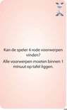 Het is een beetje gokken of het de ander lukt, maar de opdrachten zijn grappig. Fijn om een spel te spelen waarbij iedereen het wil proberen. De opdrachten zijn vlot (3zandlopers: Max1 minuut). Na paar keer spelen wel wat voorspelbaarder. Toch nog leuk en makkelijk te pakken.