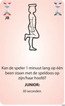 Het is echt een super leuk spel! erg gezellig om te doen met vrienden en familie. Ook erg leuk met wat kleinere kinderen omdat op elk kaartje een junior opdracht staat.