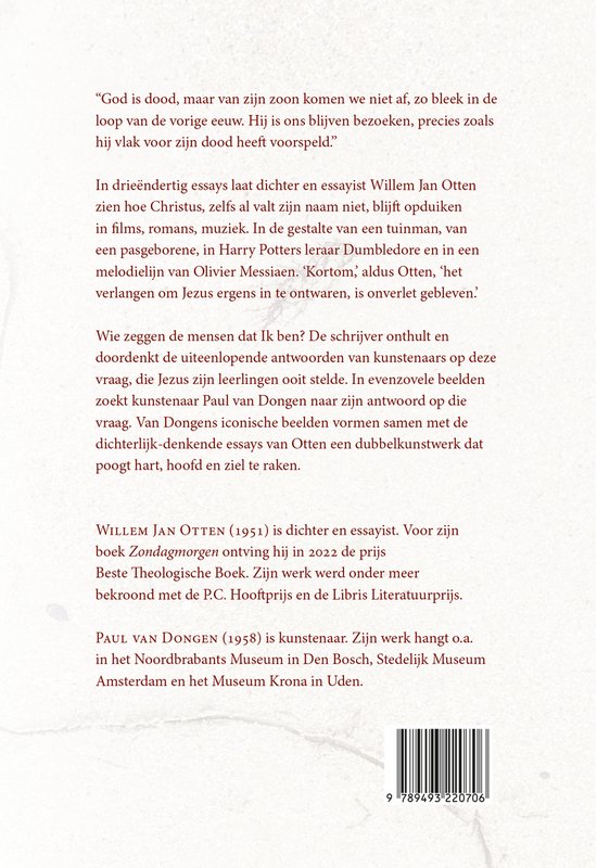 Wie zeggen de mensen dat Ik ben? De schrijver onthult en doordenkt de uiteenlopende antwoorden van kunstenaars op deze vraag, die Jezus zijn leerlingen ooit stelde. In evenzovele beelden zoekt kunstenaar Paul van Dongen naar ZIJN antwoord op die vraag. Van Dongens iconische beelden vormen samen met de dichterlijk-denkende essays van Otten een dubbelkunstwerk dat poogt hart, hoofd en ziel te raken.
