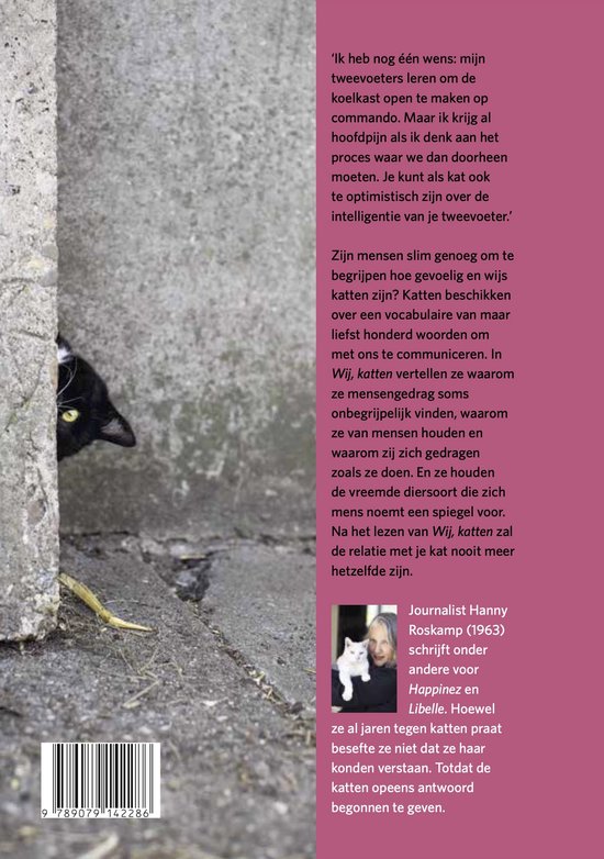Wat is dit een leuk boek. Niet uit het oog en uit de pen van de mens maar hier zijn de katten zogezegt aan het woord .Verschillende katten komen aan het woord en vertellen over de belevenissen in hun leven en over het gedrag van hun mensenbaasjes. Heb er nog flink wat bijgeleerd nu ik het gelezen heb , maar ook over foutjes die ik onbewust steeds weer maak. Er staan zovel grappige verhalen in als ook een beetje verdrietig soms maar in de meeste gevallen had ik toch een lach op mijn gezicht. Ik raad dit boek aan , aan alle mensenbaasjes , oftewel aan het kattenpersoneel om dit boek te lezen. Euro 10,- van het aankoop bedrag gaat trouwens naar een goed doel voor katten dat las ik op hun site. 2 vliegen in 1 klap. I love it