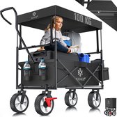 Wildebeest Bolderkar Opvouwbaar Grijs - Bolderwagen Met Kinder zitje - Bolderkarren - Handkar Grijs - Opvouwbaar Transportwagen - Transportkar - Handkar Tuin Trolley met Dak Transport Trolley XXL