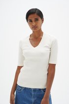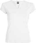 Wit Dames afgeronde V-hals getailleerd t-shirt model Belice maat 2XL