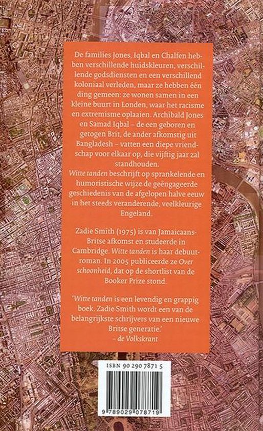 Zadie Smith (1975) is van Jamaicaans Britse afkomst en studeerde in Cambridge, Witte tanden is haar debuut roman. In 2005 publiceerde ze Over schoonheid, dat op de shortlist van de Booker Prize stond.