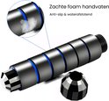 - Verzwaard springtouw: Zwart met blauwe accenten (gewicht in handvaten).