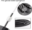 Het springtouw is bij uitstek het sterkste stalen touw welke in vergelijking met andere springtouwen goed staande houdt en nog langer meegaat dan de meeste andere reguliere springtouwen.
