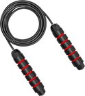 WM Sports Springtouw verzwaard - Touwtje springen - Rope skipping - Jump rope - Speedrope - Verstelbaar - Voor volwassenen en kinderen - Sport springtouw - Fitness, crossfit en boksen - Staaldraad - Foam handvaten - Lengte 280 cm - Zwart, Rood