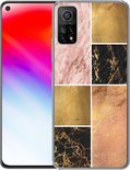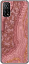 Telefoonhoesje Geschikt voor Xiaomi Mi 10T 5G hoesje - Marmer print - Rosé - Goud - Siliconen Telefoonhoesje Telefoonhoesje
