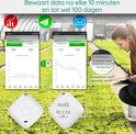 - App pusht meldingen zodra temperatuur of vochtigheid buiten het vooraf ingestelde bereik valt.