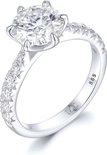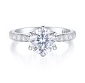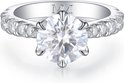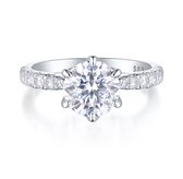 Maak kennis met Yuliana - het toppunt van kwaliteit en elegantie. Yuliana is niet zomaar een ring; het is een uiting van elegantie, ontworpen om de essentie van verfijning vast te leggen met perfect uitgelijnde zijstenen die langs de band lopen, waardoor bij elke beweging een symfonie van licht ontstaat. De robuuste band van 2,5 mm, die subtiel toeloopt om de ronde moissanite te omarmen, biedt een balans tussen kracht en schoonheid, wat ervoor zorgt dat de ring net zo duurzaam als prachtig is.