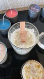 - Smelt de was: Verwarm de soja was au bain-marie in de smeltpan en voeg kleur- en geurstoffen toe naar wens.