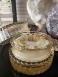 - Giet en versier: Giet de gesmolten was in je kaarsenblikje of potje en versier je kaars met bloemen, edelstenen of andere decoraties. Zorg ervoor dat je voldoende ruimte voor de vlam overlaat.