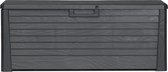 2 Stuks bruine tuin opbergboxen met hout patroon. Deze waterdichte en weervaste box kunt u gebruiken voor het opbergen van uw tuinkussens, maar natuurlijk ook voor speelgoed en tuingereedschap. Formaat: ca. 120 x 45 x 58 cm, inhoud: 300 liter. Materiaal: kunststof. De opbergboxen worden geleverd als een bouwpakket.