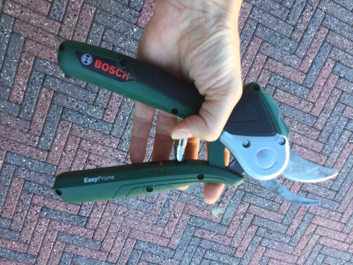 Het idee alleen al sprak me aan : een draadloze elektrische ondersteuning bij het snoeien. :) De Bosch Easy Prune maakt snoeien inderdaad tot een makkelijk klusje. Tenminste als het om niet al te dikke takken gaat. Voor het snoeien van dikke braamtakken of rozen of dunne fruitboom-takken is het ideaal. Ook het klein maken van gesnoeid hout gaat prima. De accu gaat best lang mee en omdat hij licht is in gebruik kun je zeker meer werk verzetten dan wanneer je zou snoeien zonder de elektrische ondersteuning die de Bosch Easy Prune geeft. Hij is ook met 2 handen goed te bedienen, wat bij het verder reiken of meer kracht zetten wel handig is. De hangreep is wat groot voor mijn handen maar zelfs dan nog wegen de voordelen van het eenvoudig snoeien op tegen de verbeterpunten.