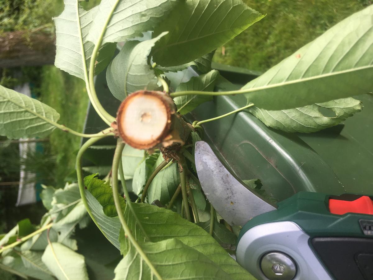 Het is een fijne scherpe snoeischaar, krachtig door de elektrische ondersteuning. Let op dat je niet te dikke takken snoeit, dat gaat niet. Maar verder allerlei soorten takken geprobeerd van een kiwi, pruimenboom, appelboom, diverse kleinfruitstruiken en dit gaat allemaal moeiteloos.